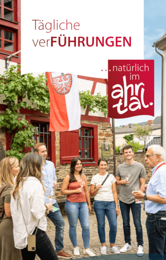 Erlebnis Ahrwein, der Flyer, das Ahrtal schmecken und erleben.